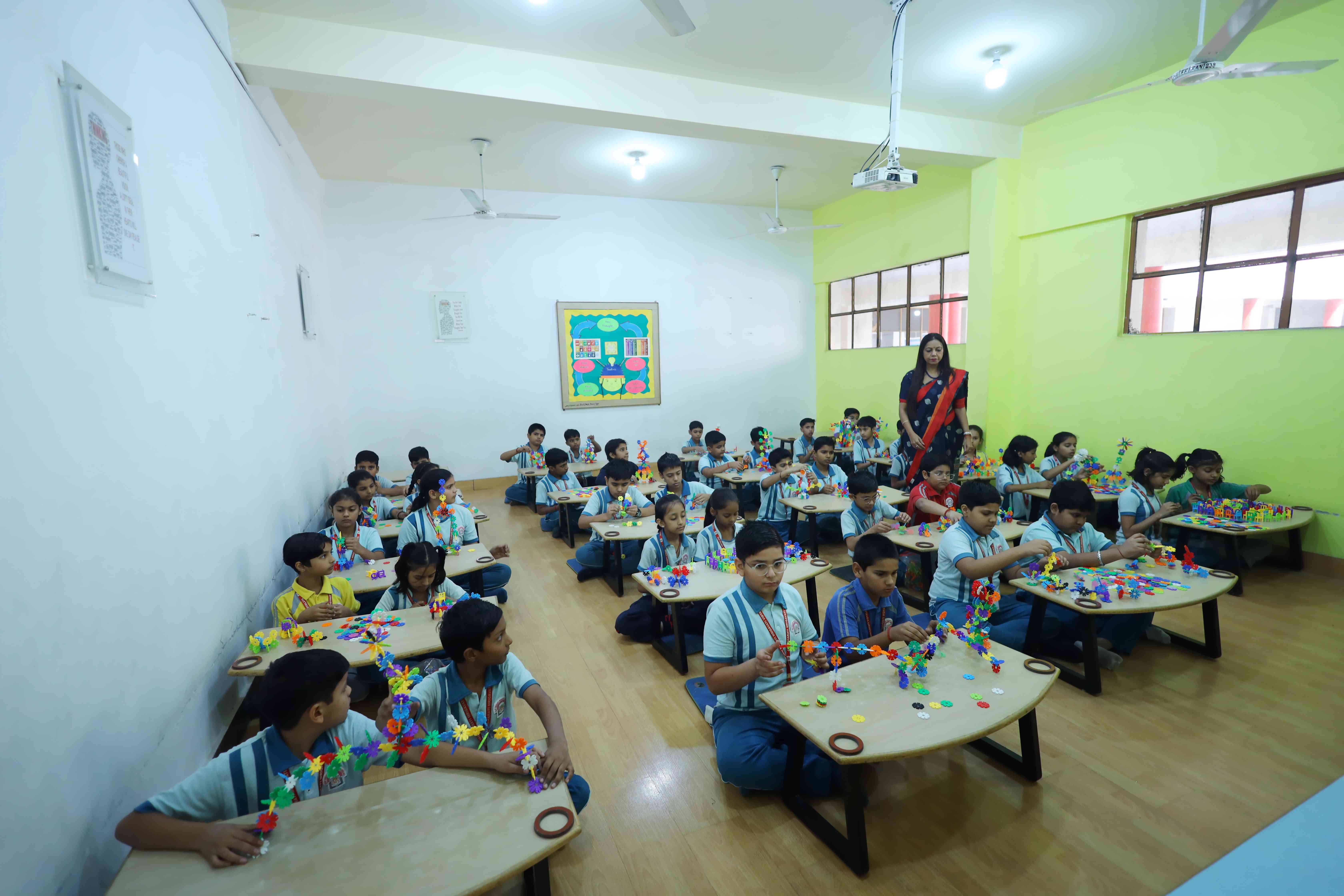Here the students are given an exposure to experiential learning and they learn through certain thinking tools and mind games in a fun-filled way. The educational tools are designed specifically to encourage cognitive thinking skills like basic logic, reasoning and creative concepts.