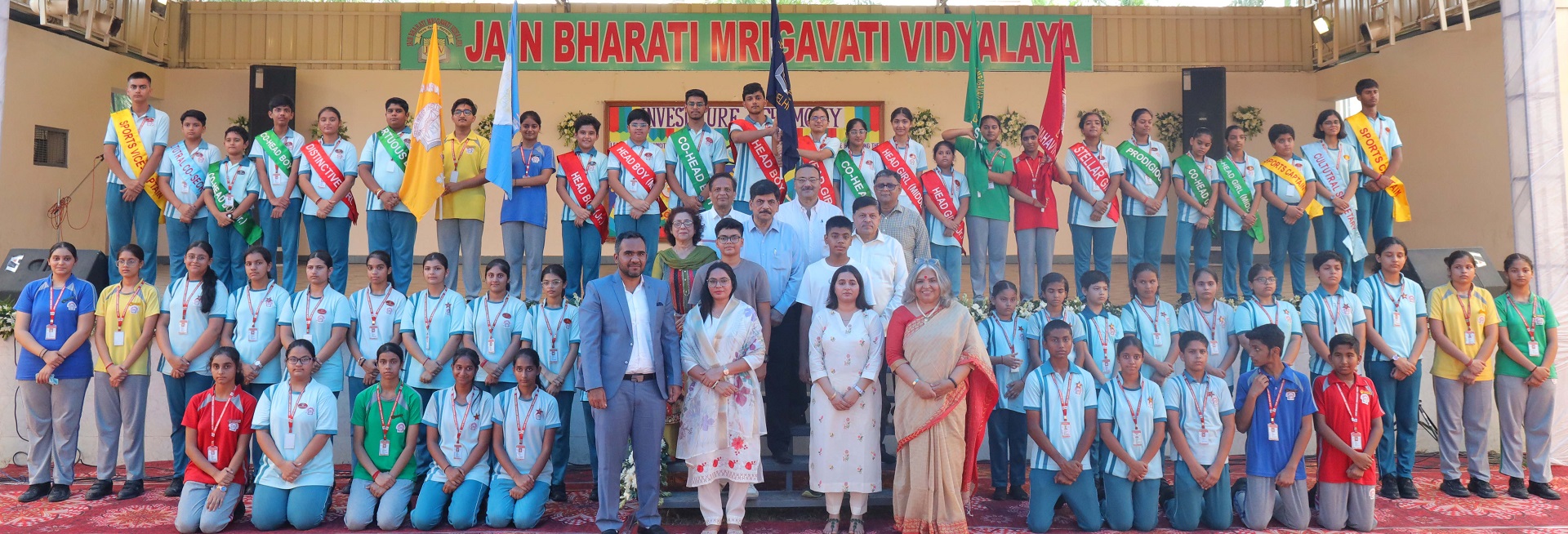The Prefectorial Board at Jain Bharati Mrigavati Vidyalaya is a parliament of student leaders selected after a rigorous process. Students fill the application form and the selected ones appear for the interview. They are being interviewed by a panel of teachers and Principal. Their knowledge of current affairs, leadership skills and communicative skills are assessed. Thereafter, they are finally selected to don the responsibilities as future leaders. The Student Council undergoes training on how to serve fellow humans selflessly and with the aim of welfare of all. They help the school in smooth conduct of various programmes and activities like PTMs, special days celebration, orientations, etc. They also play a disciplinary role and help to remind the fellow students of their conduct and behaviour. Outside the school, they are emissaries of the school and the badge they wear symbolises the status endowed upon them. Hence, they learn lessons for life.